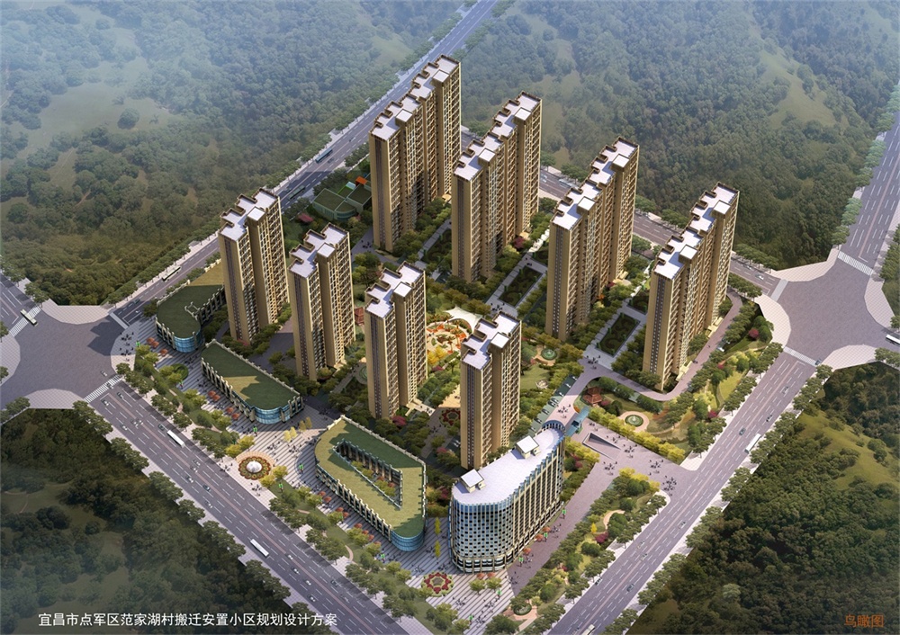 湖景名苑安置房小區(qū)位于點軍區(qū)范家湖村,占地93.13畝,總建筑面積為245954.22平方米,其中住宅建筑面積為161850.22平方米,商業(yè)面積為10735.57平方米,綜合樓面積為17048.64平方米,配套公建面積為8262.48平方米,總投資約6.9億。容積率3.2,綠地率30.4%,安置戶數(shù)1472戶。共有13棟單體建筑,其中8棟30~32層高層住宅,配備了幼兒園、村民禮堂、菜市場、綜合樓、村民活動中心、商業(yè)街及配套配電室、球場等配套設(shè)施,共設(shè)停車位1362個。