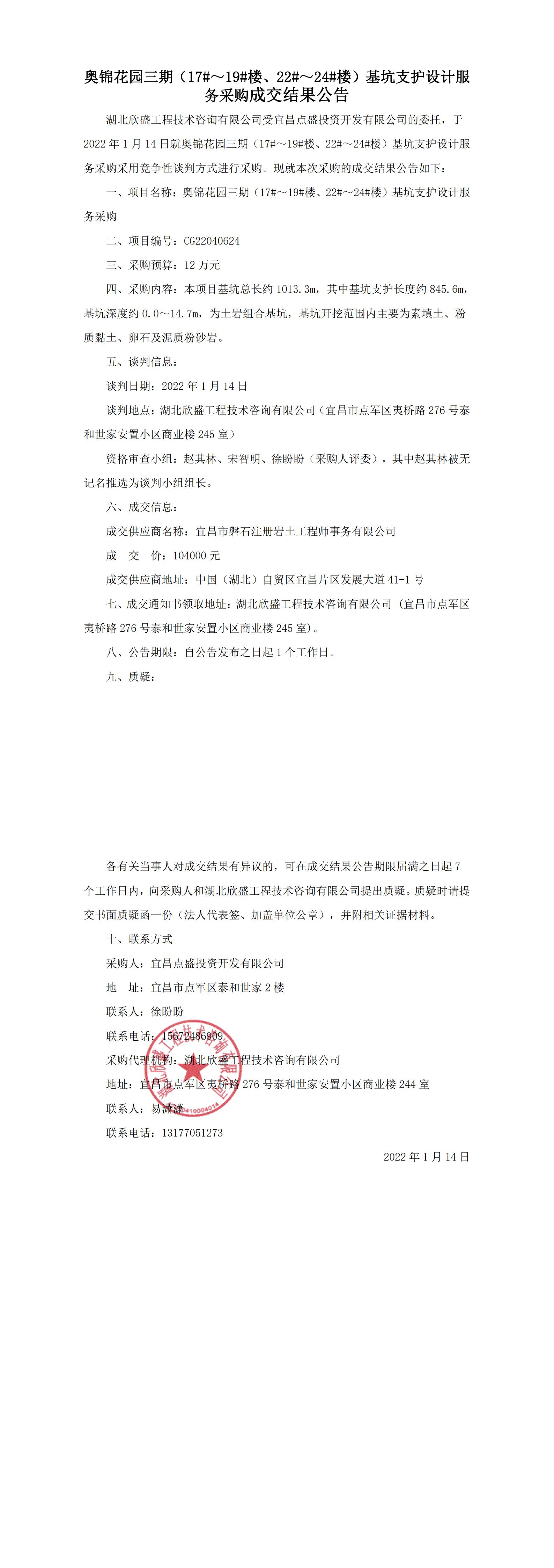 奧錦花園三期(17#~19#樓、22#~24#樓)基坑支護(hù)設(shè)計服務(wù)采購成交結(jié)果公告
