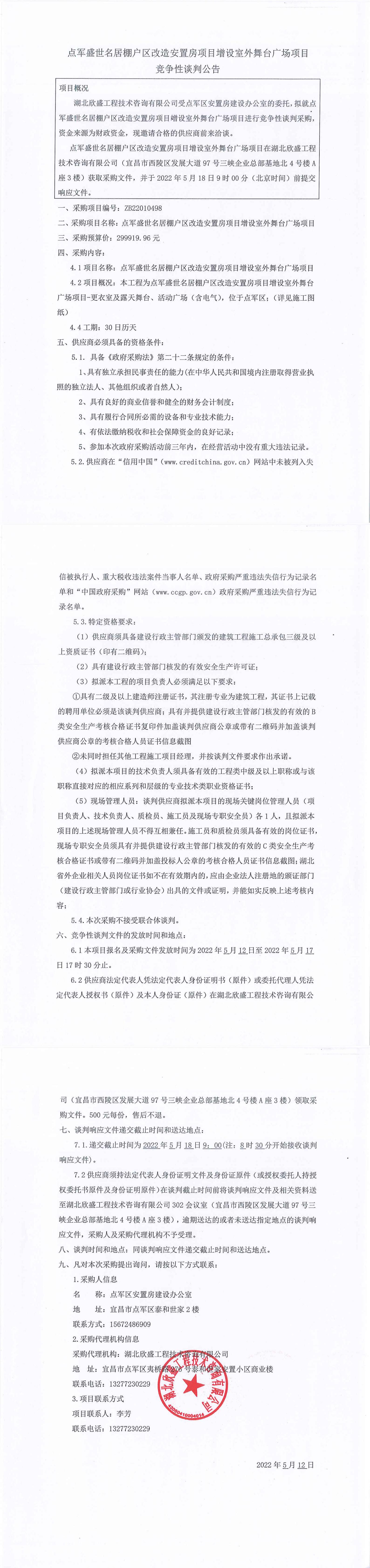 點軍盛世名居棚戶區(qū)改造安置房項目增設(shè)室外舞臺廣場項目談判公告