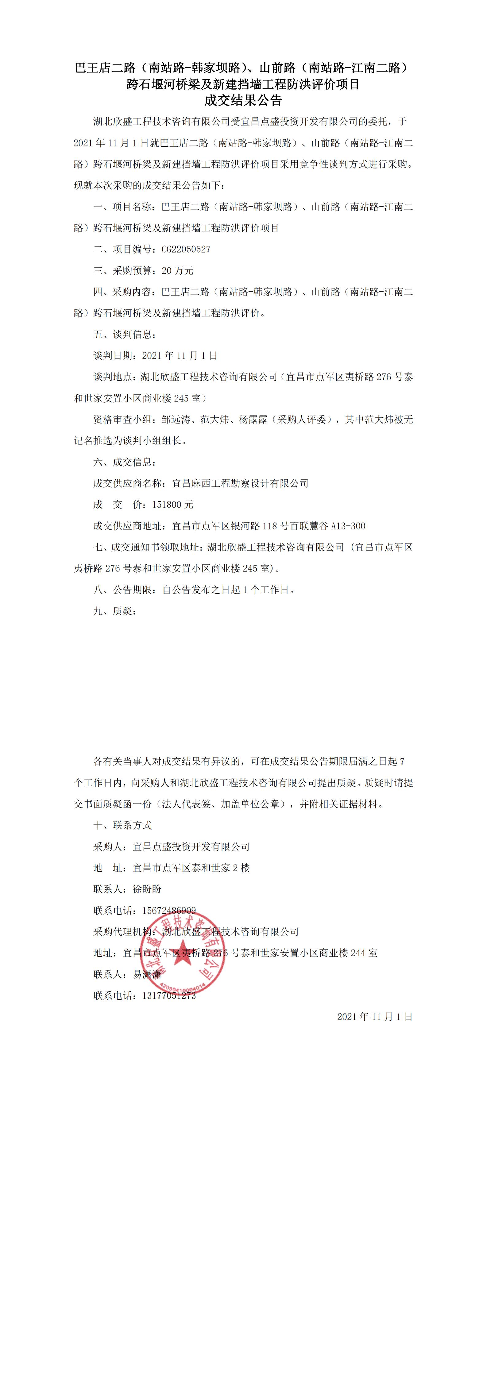 巴王店二路(南站路-韓家壩路)、山前路(南站路-江南二路)跨石堰河橋梁及新建擋墻工程防洪評(píng)價(jià)項(xiàng)目成交公告