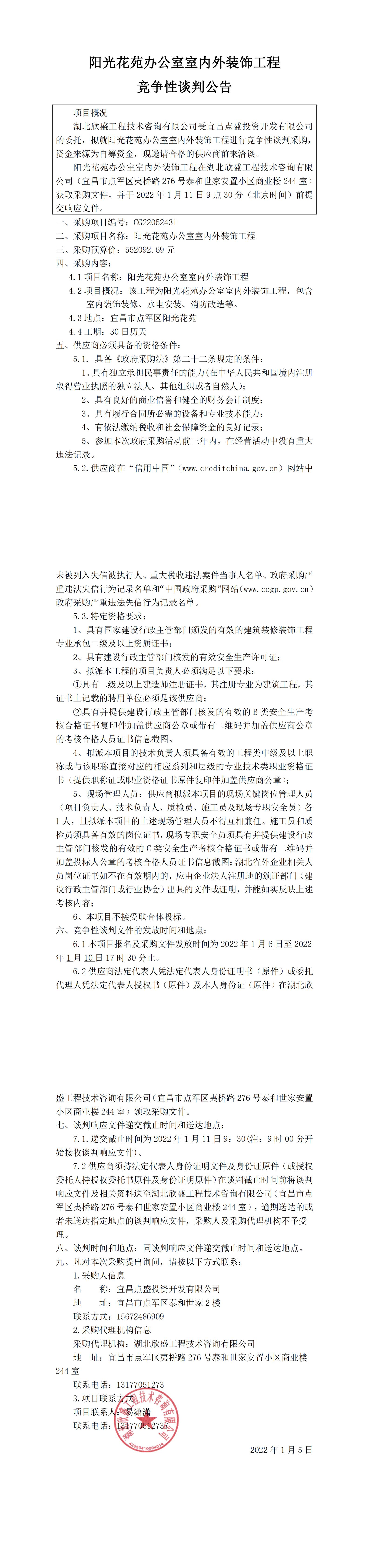 陽(yáng)光花苑辦公室室內(nèi)外裝飾工程競(jìng)爭(zhēng)性談判公告