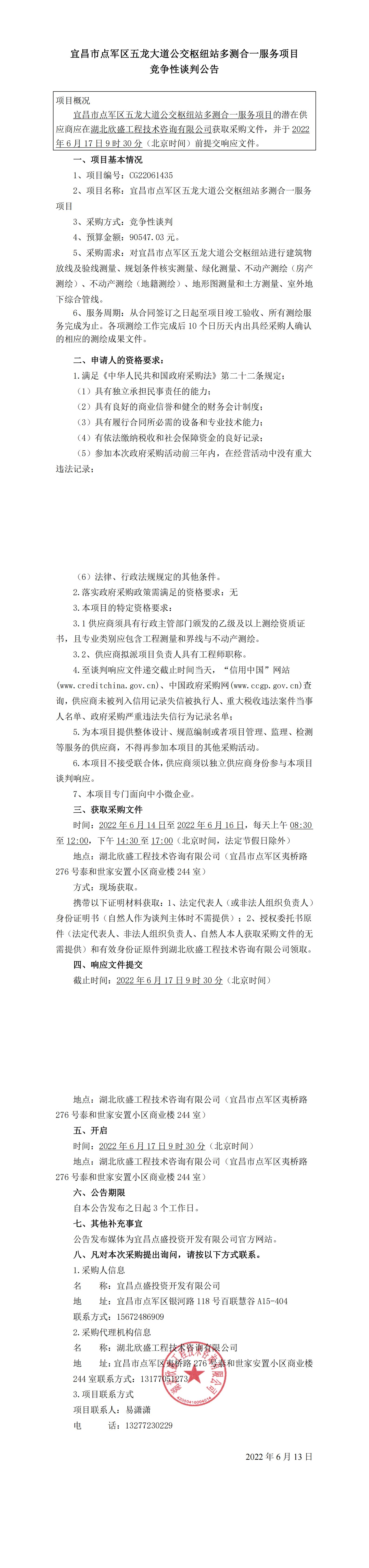 宜昌市點(diǎn)軍區(qū)五龍大道公交樞紐站多測合一服務(wù)項目競爭性談判公告