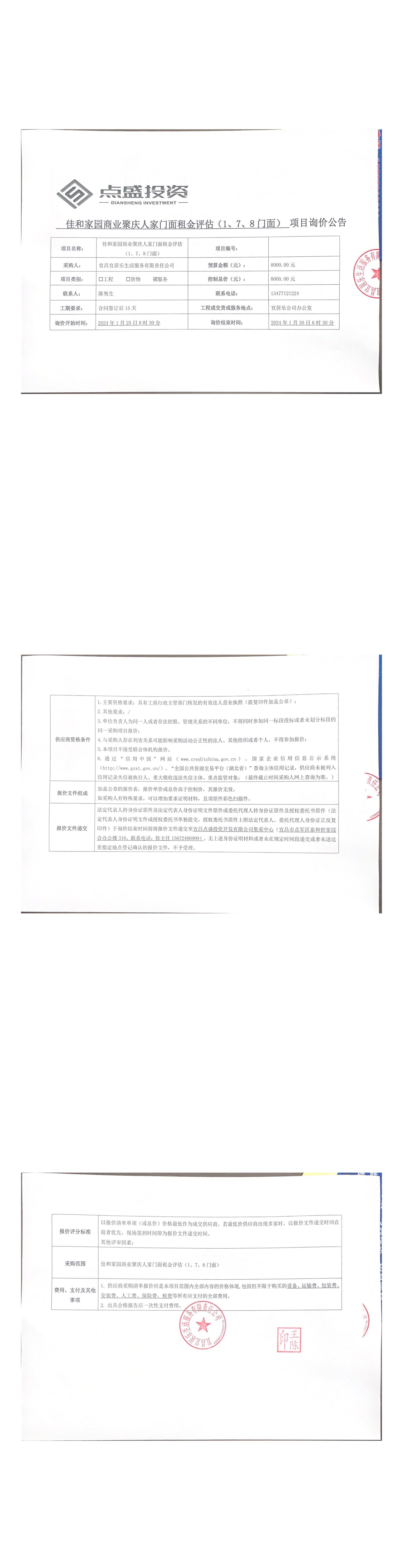 佳和家園商業(yè)聚慶人家門面租金評(píng)估(1、7、8門面)詢價(jià)公告