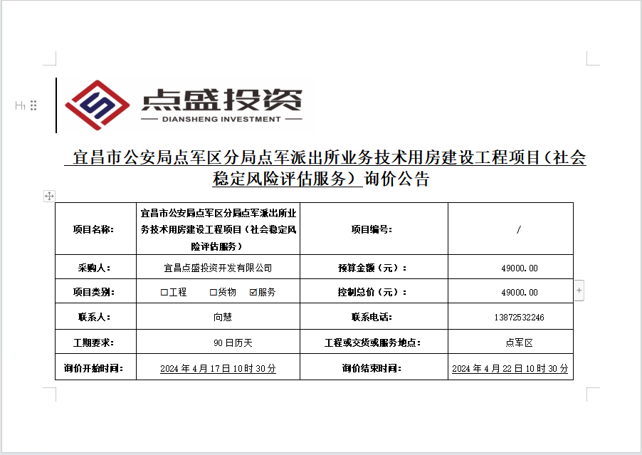宜昌市公安局點軍區(qū)分局點軍派出所業(yè)務技術用房建設工程項目(社會穩(wěn)定風險評估服務)詢價公告