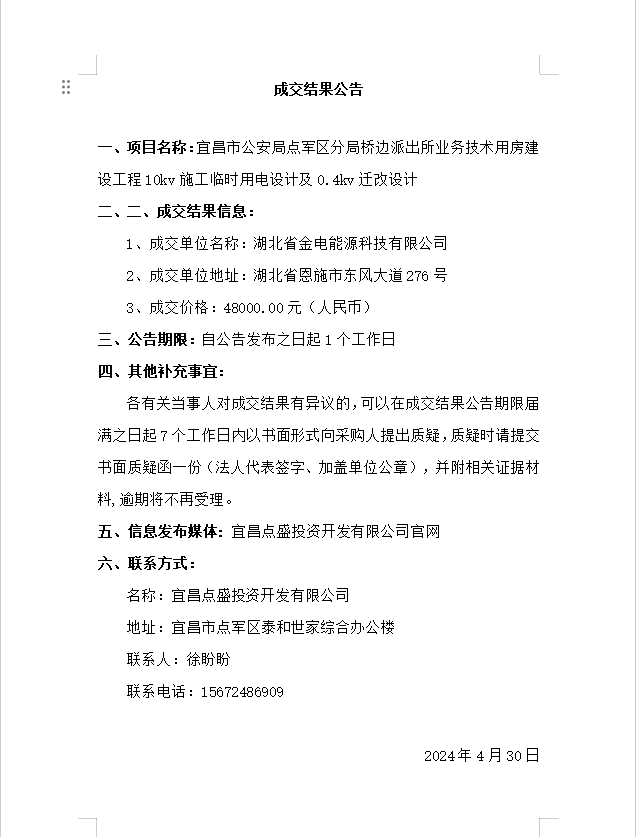 宜昌市公安局點軍區(qū)分局橋邊派出所業(yè)務技術用房建設工程10kv施工臨時用電設計及0.4kv遷改設計成交公告