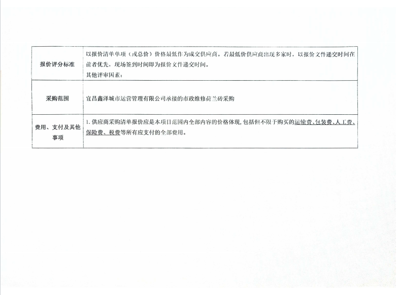 宜昌鑫澤城市運(yùn)營(yíng)管理有限公司市政維修荷蘭磚采購(gòu)項(xiàng)目詢價(jià)公告