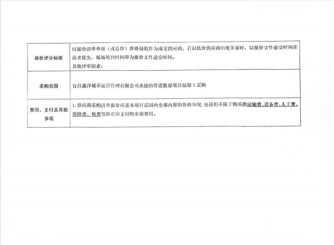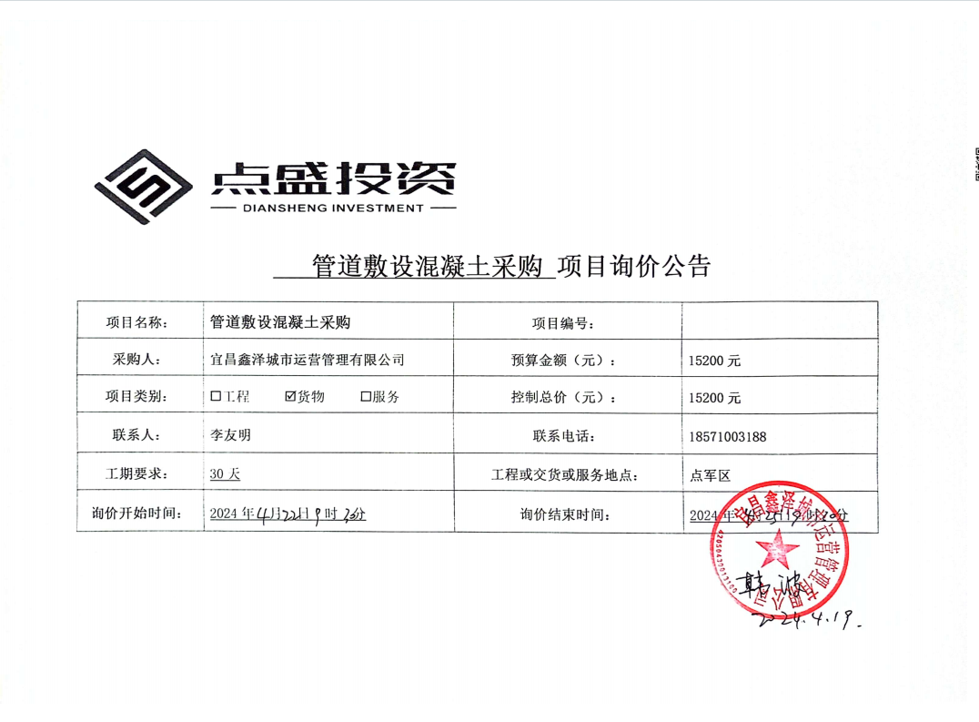 管道敷設(shè)混凝土采購項(xiàng)目詢價公告
