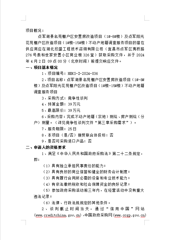 點(diǎn)軍湖景名苑棚戶區(qū)安置房改造項(xiàng)目(1#-8#樓)及點(diǎn)軍陽光花苑棚戶區(qū)改造項(xiàng)目(1#樓-15#樓)不動產(chǎn)地籍調(diào)查服務(wù)項(xiàng)目談判公告